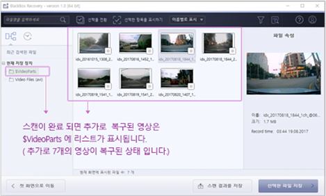 블랙박스는 저장과 삭제가 반복되는 특성상 장애 유형에 따라 복구율이 달라질 수 있습니다.