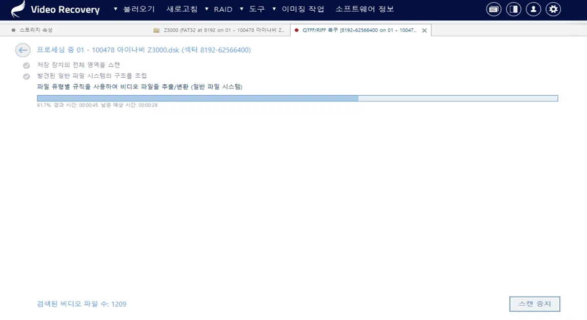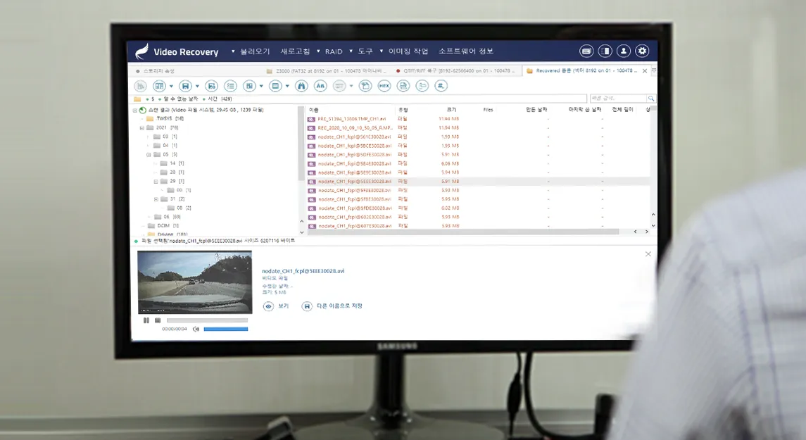 복구천사는 자체 개발한 솔루션을 기반으로 포맷, 부분 덮어쓰기, 전원 차단 등으로 인해 영상 리스트에 나타나지 않는 데이터도 복구 서비스를 제공합니다.