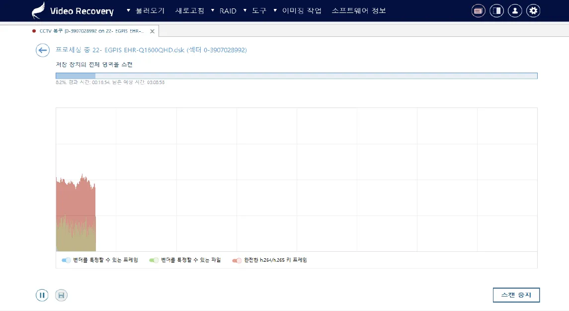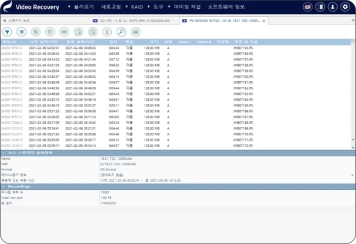 포맷, 부분 덮어쓰기, 삭제된 영상, 파일 시스템을 알 수 없는 논리 장애 증상으로부터 복구를 시도할 수 있습니다.