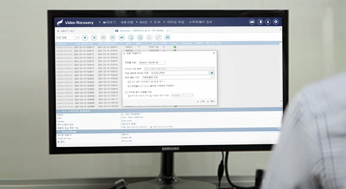 벤더별 스트림 감지 기술로 영상과 음성을 정확하게 복구합니다.