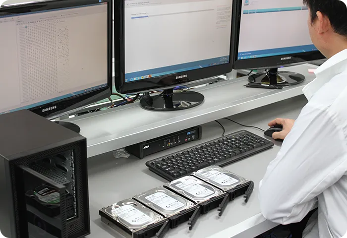 30년 이상의 복구 경험을 가진 전문가가 상주하며, 자체 크린 부스 및 10클래스 이하 청정 환경에서 하드디스크 부품 교체를 정밀하게 수행합니다.