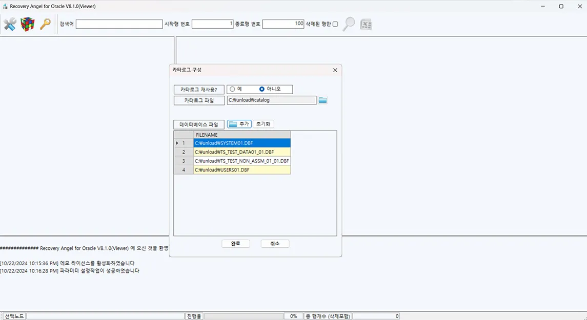 Oracle이 시작되지 않거나 Hidden Parameter 조정 후에도 'internal code error'가 발생하는 경우, 복구천사는 자체 기술로 DBF 파일에서 직접 데이터를 복원할 수 있습니다.